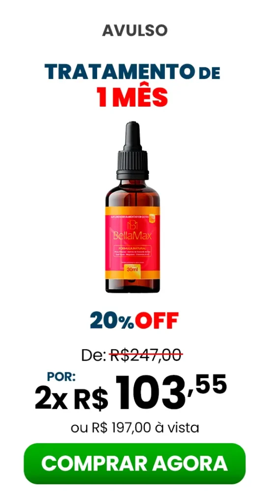 Para resultados satisfatórios, é recomendado o consumo de 20 gotas (1 ml) do BellaMax ao dia. Cada dose tem quantidade suficiente para garantir um intenso efeito do produto no organismo por até 24 horas.